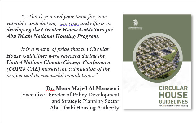 Developed Circular House Guidelines to design, construct, maintain and deconstruct buildings according to the principles of Circular Economy. The project was released during COP28, UAE, December 2023.