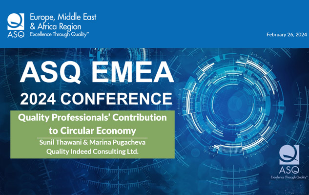 Delivered speech titled “Quality Professionals’ Contribution to Circular Economy” at ASQ EMEA 2024 Conference” UAE, February 2024.